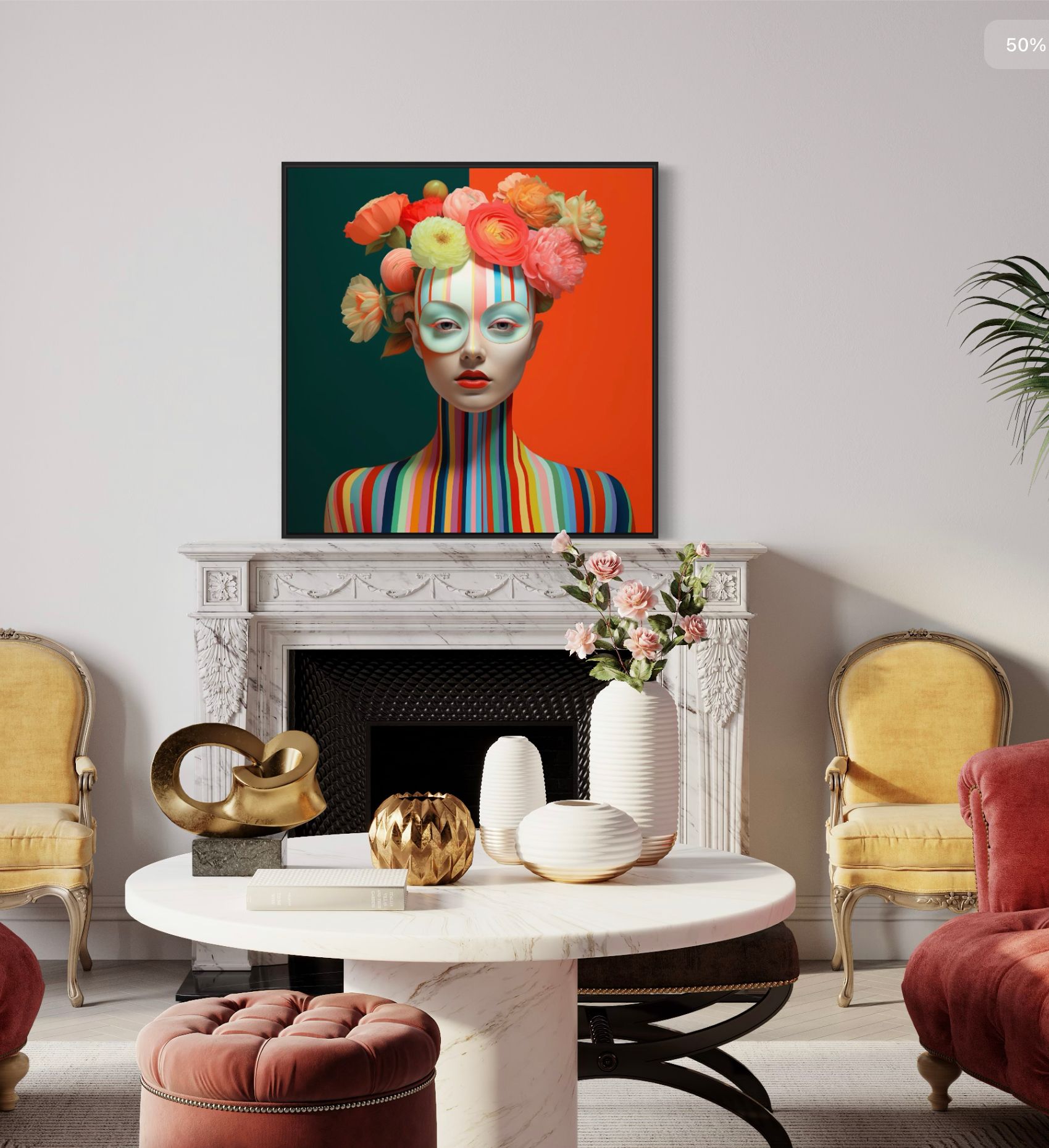 I am fascinated by the possibilities of Artificial Intelligence in creating art. Collaborating with AI, I discover inspiration in unexpected combinations of shapes, colors, and textures, which result in unique design patterns. Many of these creations feel like true works of art, worthy of being displayed on walls, enhancing and complementing the space. This process allows me not only to create but also to experiment with ideas that might otherwise remain in my imagination.