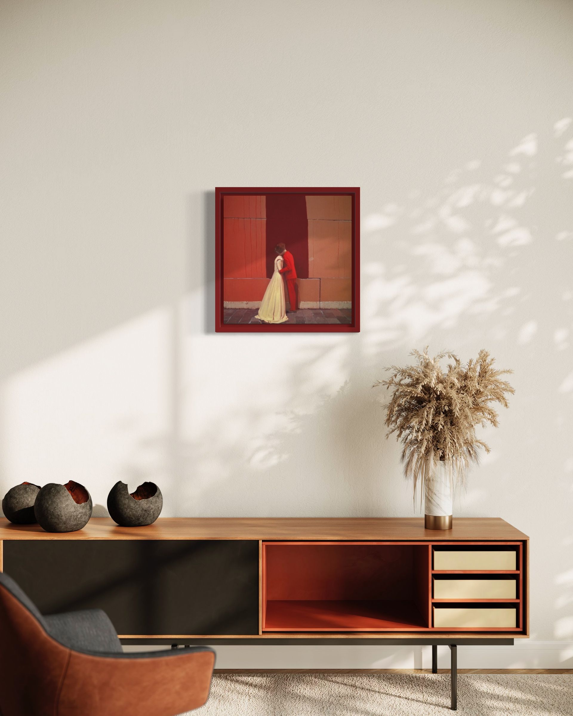 The Red Sheep of Love is an abstract painting created with acrylics, symbolizing the transformative process of love.